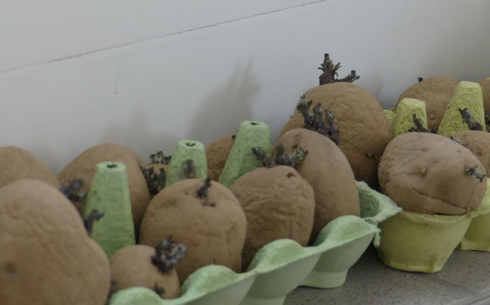 Gut vorgekeimt - unsere Pflanzkartoffeln, bereit zum Pflanzen.