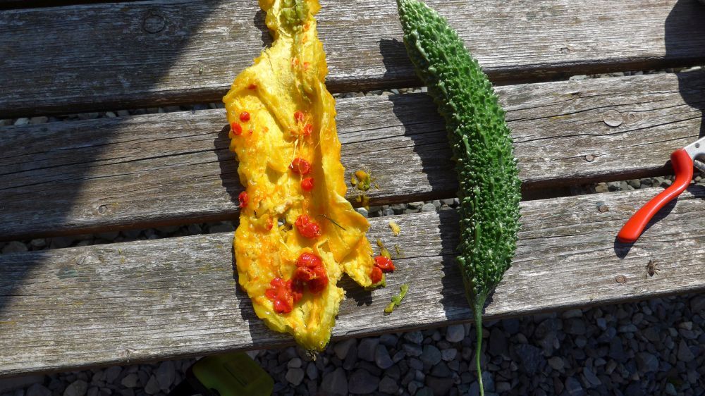 Bittergurken: einmal reif, einmal noch genießbar