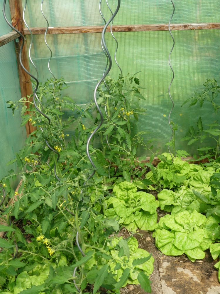 Im Gewächshaus ernten wir die ersten Kopfsalate.